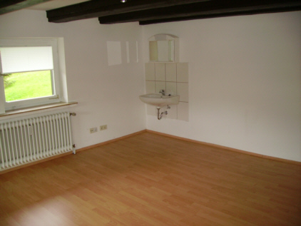 Das Zimmer K02 ist mit 25m² das größte Zimmer der dreier WG und ist unmöbliert.