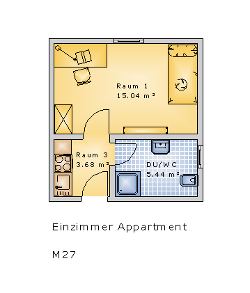Hier einige Bilder vom Einzimmerappartment M27